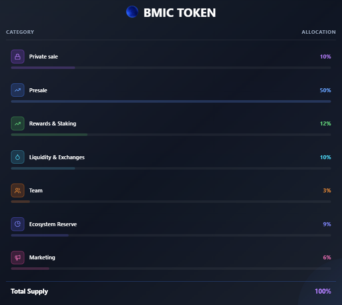 Tokenomics do BMIC e Oportunidade de Pré-venda